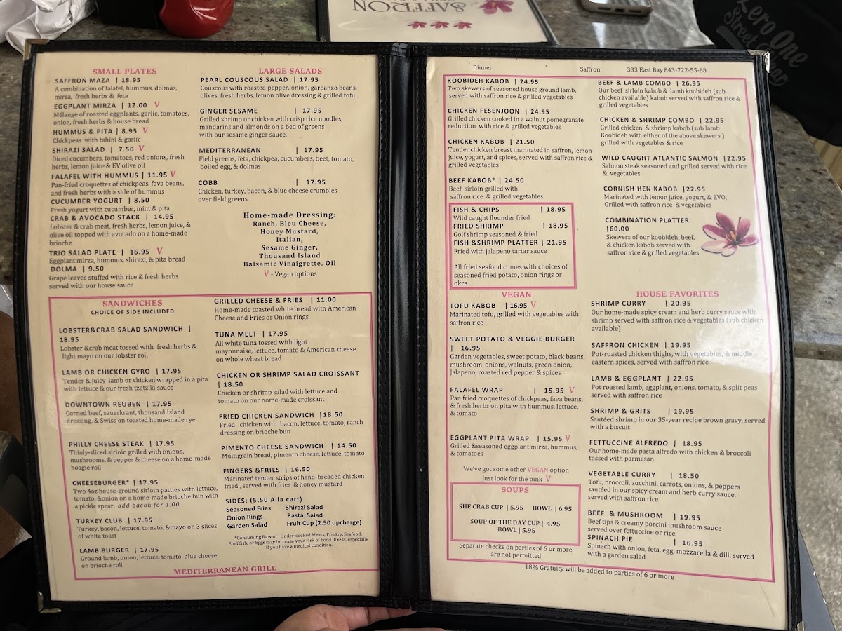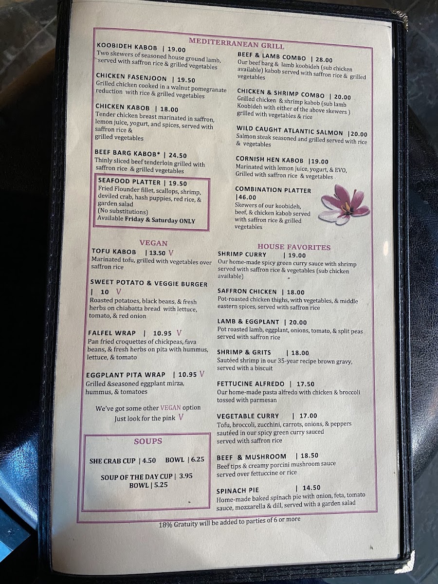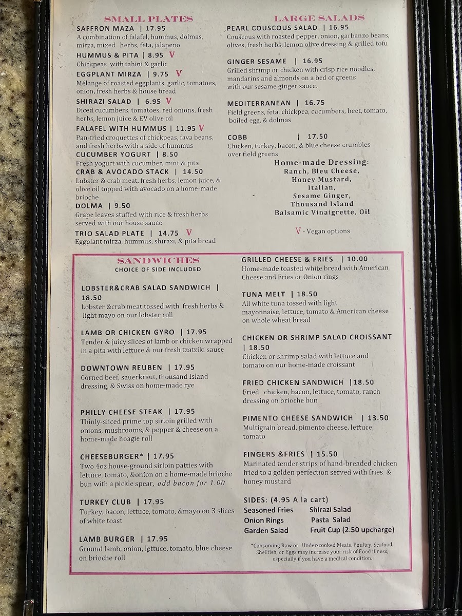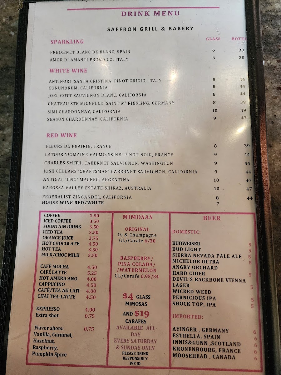 The menu at Saffron Restaurant & Bakery offers a diverse selection of dishes spanning Persian cuisine, classic American sandwiches, and a variety of baked goods and desserts. It is structured to accommodate different dining occasions including breakfast, casual lunches, and coffee breaks.